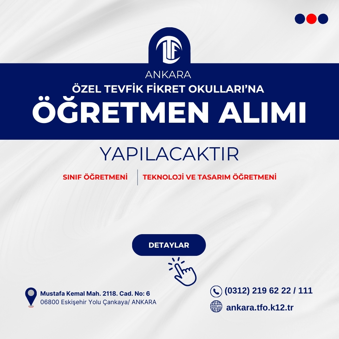 2026 – 2027 öğretim yılından itibaren Ankara Özel Tevfik Fikret Okulları’nda görevlendirilmek üzere aşağıda belirtilen branşlarda öğretmen alınacaktır.
